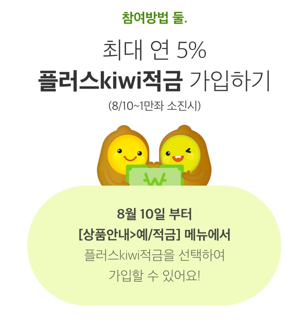 플러스 키위 적금은 10일 낮 12시 이후, 선착순 1만 명에게 판매 예정입니다.