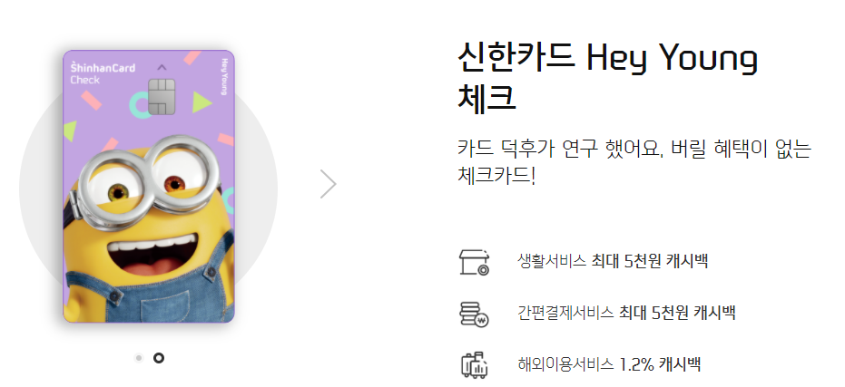 안녕하세요. 오늘은 신한은행에 나온 헤이영 체크카드에 대해서 알아보려고 해요.