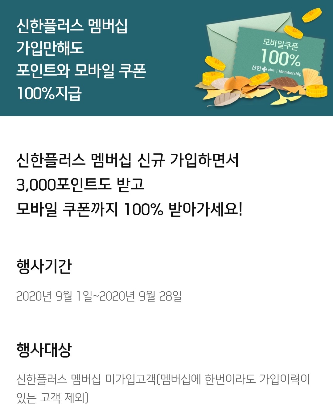 행사 대상 : 신한플러스 멤버십 미가입 고객 (멤버십에 한 번이라도 가입이력이 있는 고객 제외)