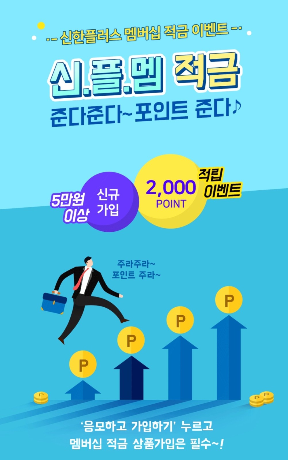 안녕하세요. 오늘 소개할 상품은 신한 플러스 멤버십 적금 상품 가입 이벤트입니다.