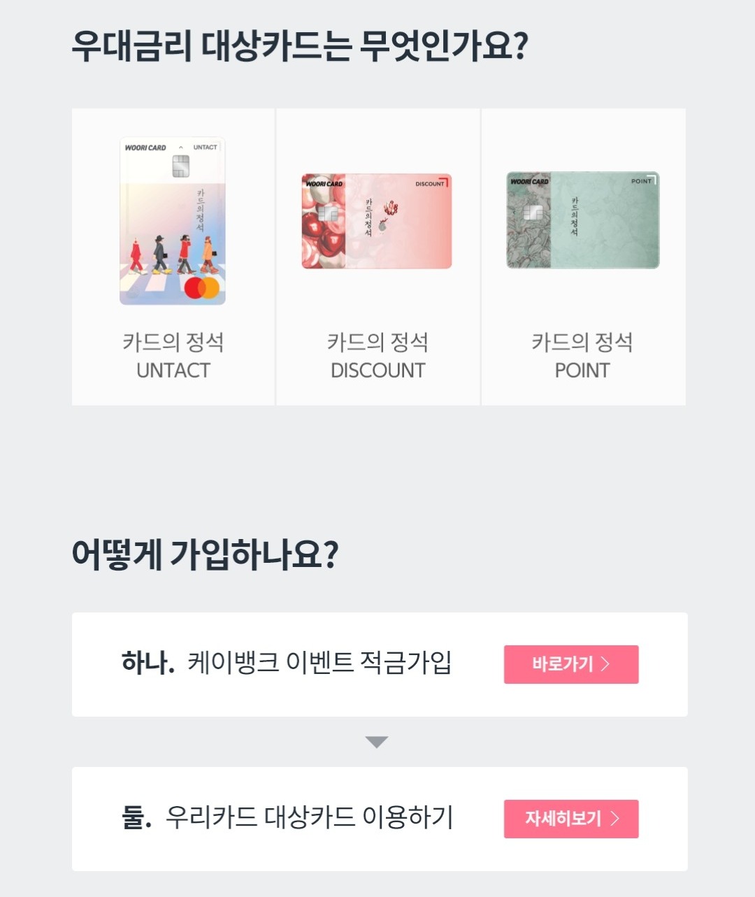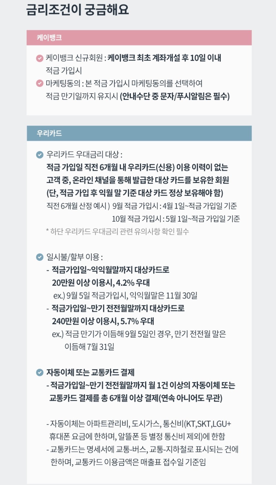 이번에는 우리카드를 사용하면 케이뱅크 적금 상품에 고금리를 주는 이벤트인데요.