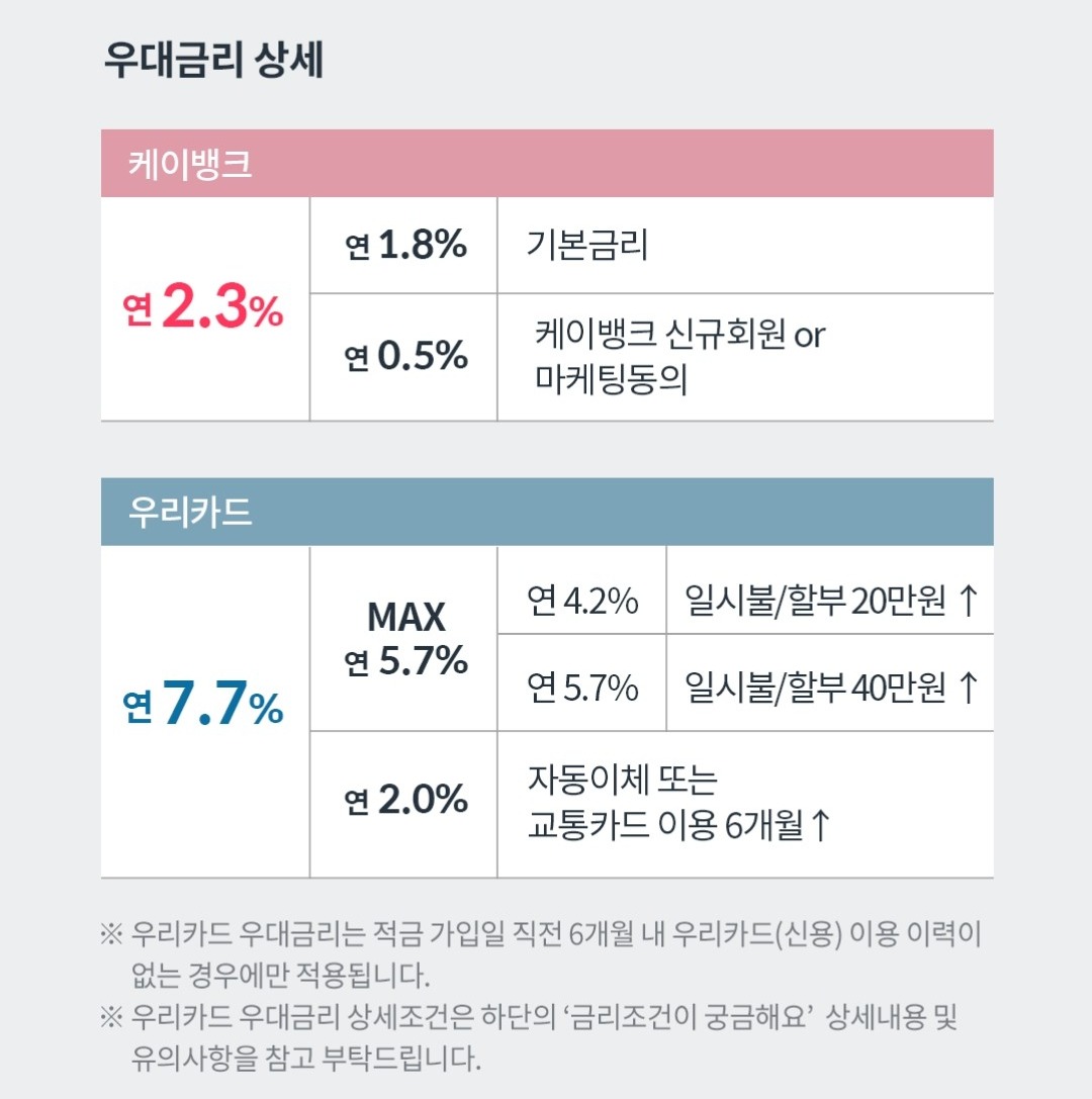 우대 금리 : 연 0.5% (케이뱅크 신규회원 또는 마케팅 동의)