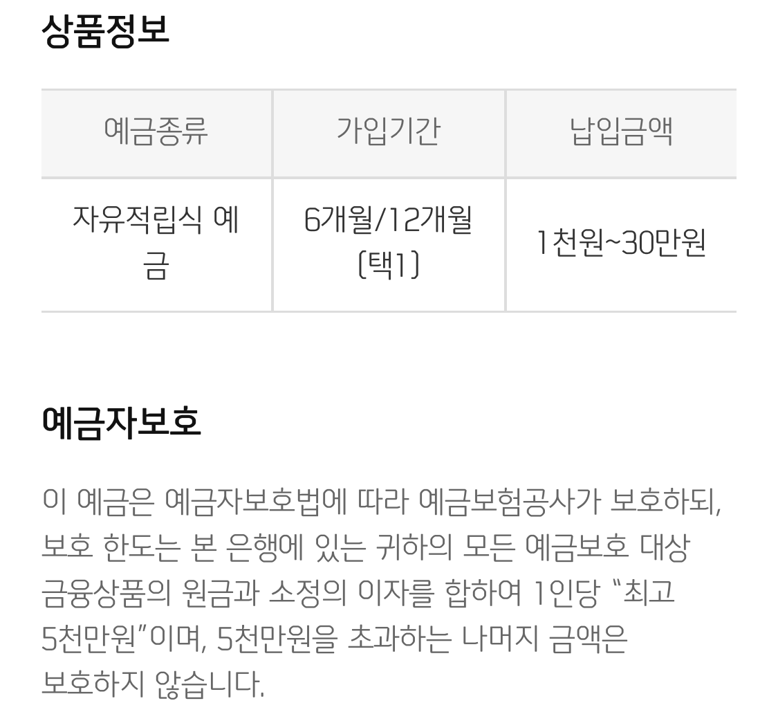 적금 가입 기간 : 6개월 또는 12개월 중 택 1