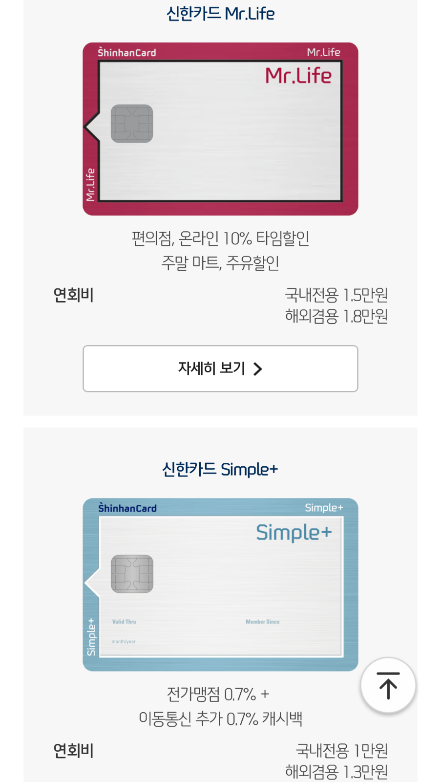 신한카드 심플 플러스가 연회비 젤 낮으니까 이걸로 고정지출 16만 원 정도만 걸어두면 소소하게 전 가맹점 0.7% 포인트도 얻을 수 있을 듯합니다.