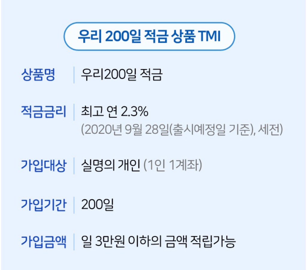 자세한 우리 200일 적금 상품 관련 내용은 밑에서 다루겠습니다.