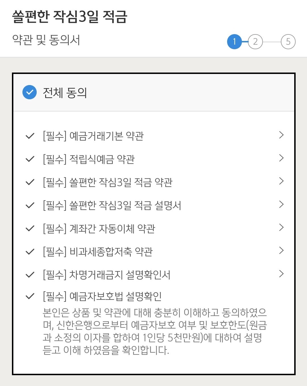 적금 가입하면 약관 동의서 체크해 주시고요.