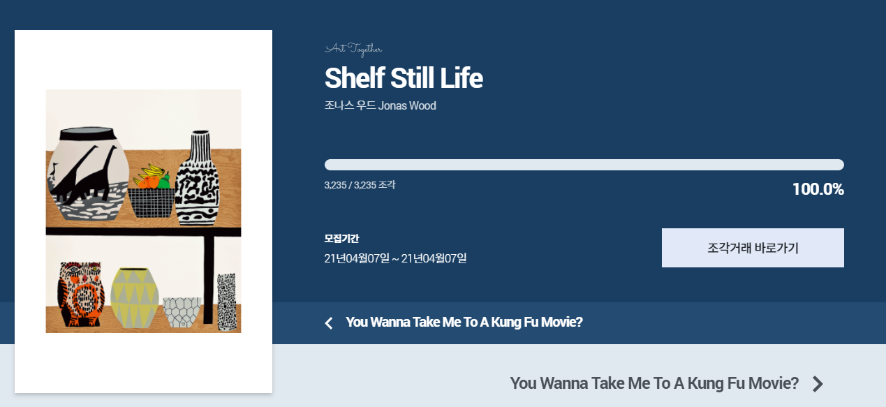 저는 이번에 조나스우드 Shelf Still Life 작품에 투자했어요.