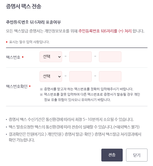 8. 팩스 전송은 팩스번호 누르면 받을 수 있고요. 팩스 있는 분들은 보내서 출력 후 사진으로 찍어 파일 저장해도 됩니다.
