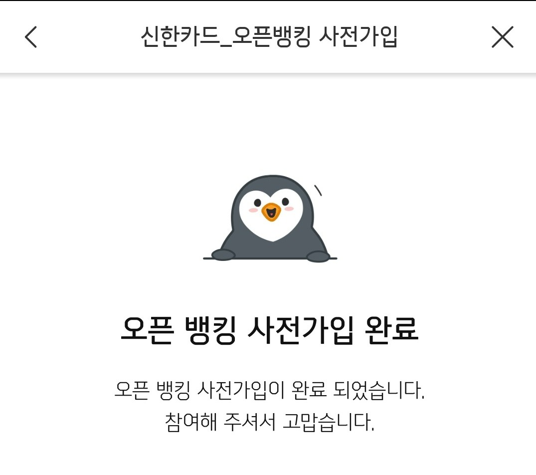 오픈 뱅킹 사전 가입 완료!