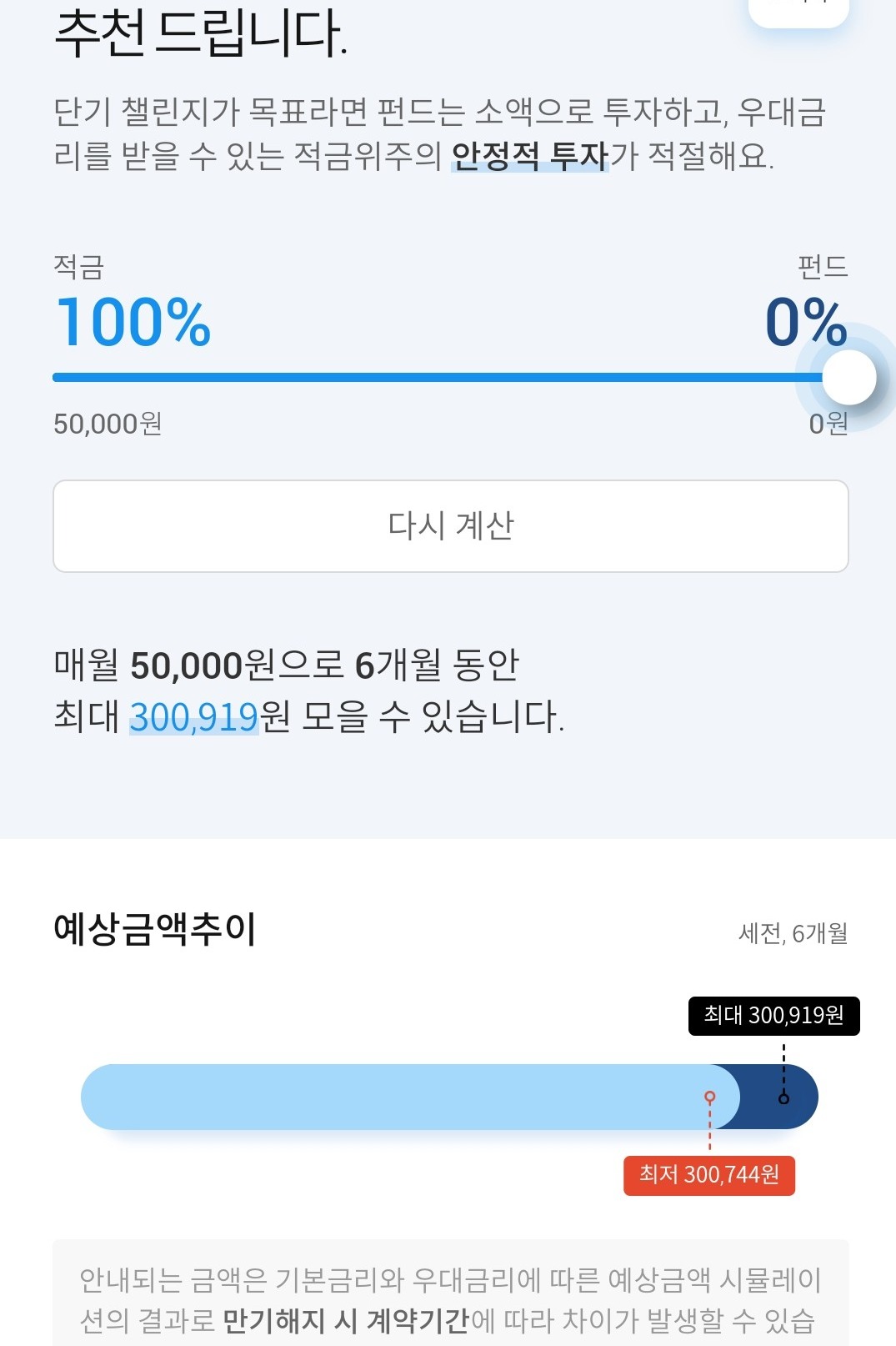 근데, 저처럼 펀드는 놉! 적금으로만 하겠습니다~라고 적금 100% 설정하면 상관없습니다.