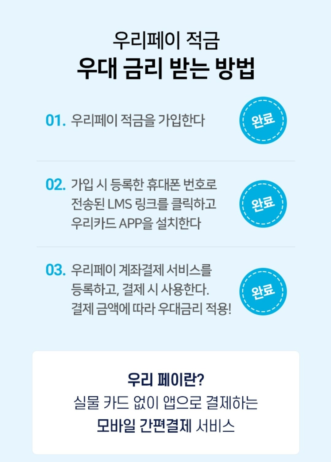 조금 더 우리페이 활성화를 위해 고금리적금 명분으로 우리페이 적금을 만든 느낌이 아주 강해요~