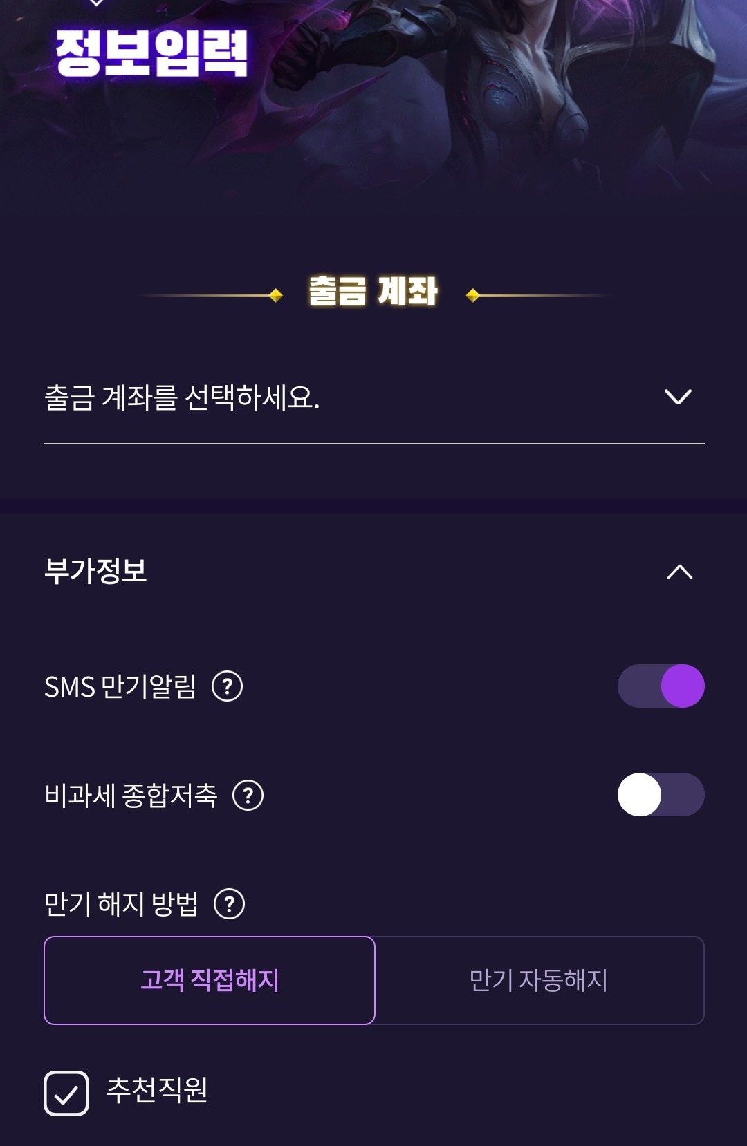 가입금액은 이벤트 최소 금액에 맞추면 됩니다.