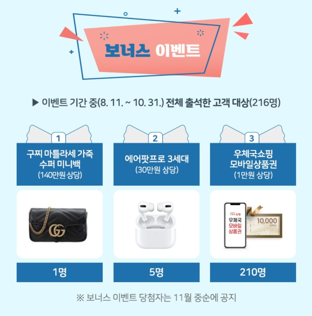 이건 8월 11일부터 10월 31일까지 전체 출석한 고객 대상 216명이라고 하네요.