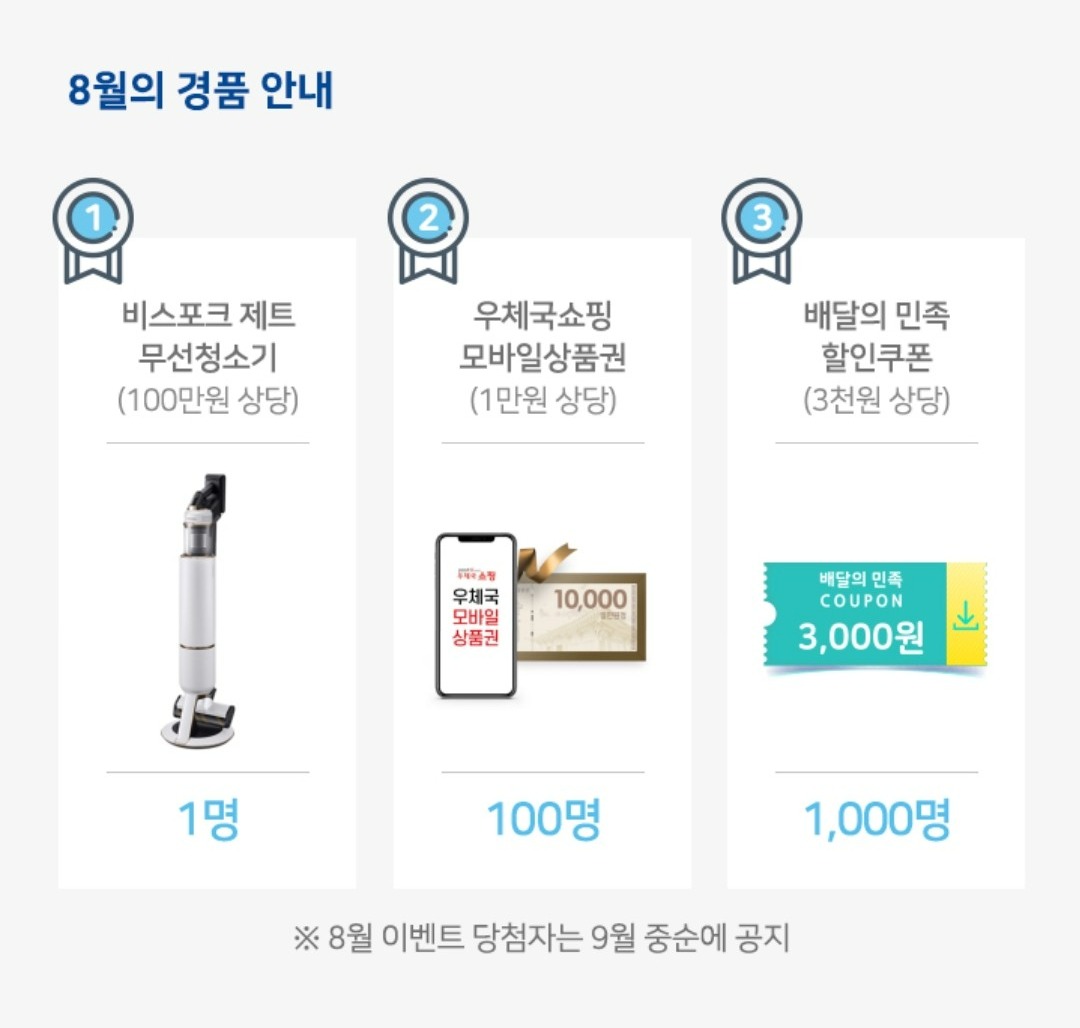 8월 경품입니다! 저는 배달의민족 탐나네요 ㅋㅋ