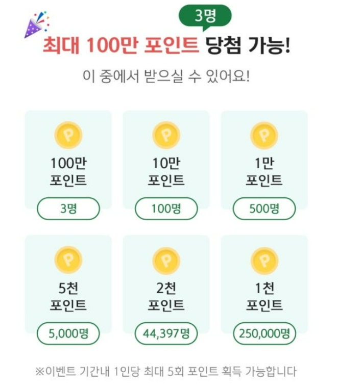 최대 1인당 5회 포인트 획득 가능하니까 5,000원만 있으면 5번 기회가 주어집니다.