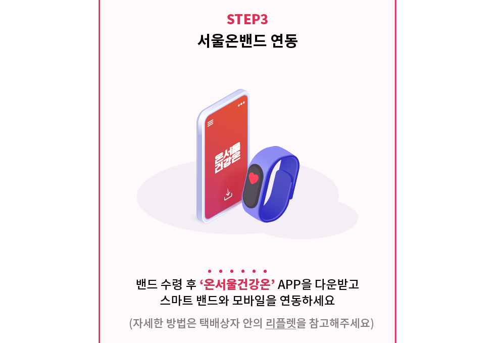 : 밴드 수령후 '온서울건강온' 앱 다운받고 스마트밴드와 모바일 연결