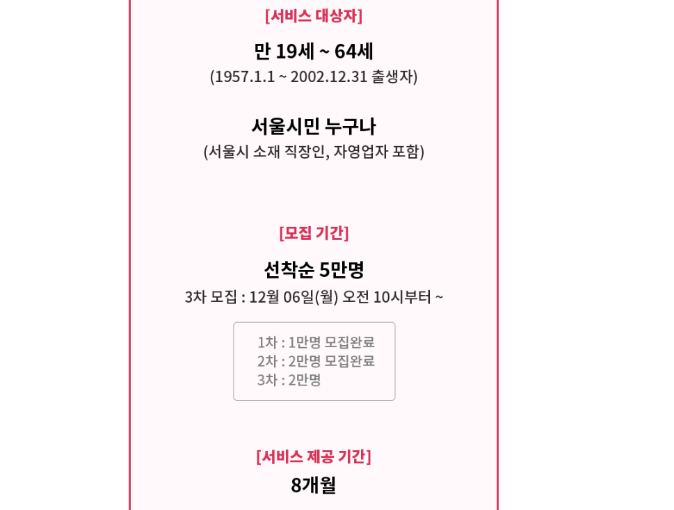 1차, 2차 신청은 뒤늦게 알아서 이미 마감되어서 아쉬웠거든요.