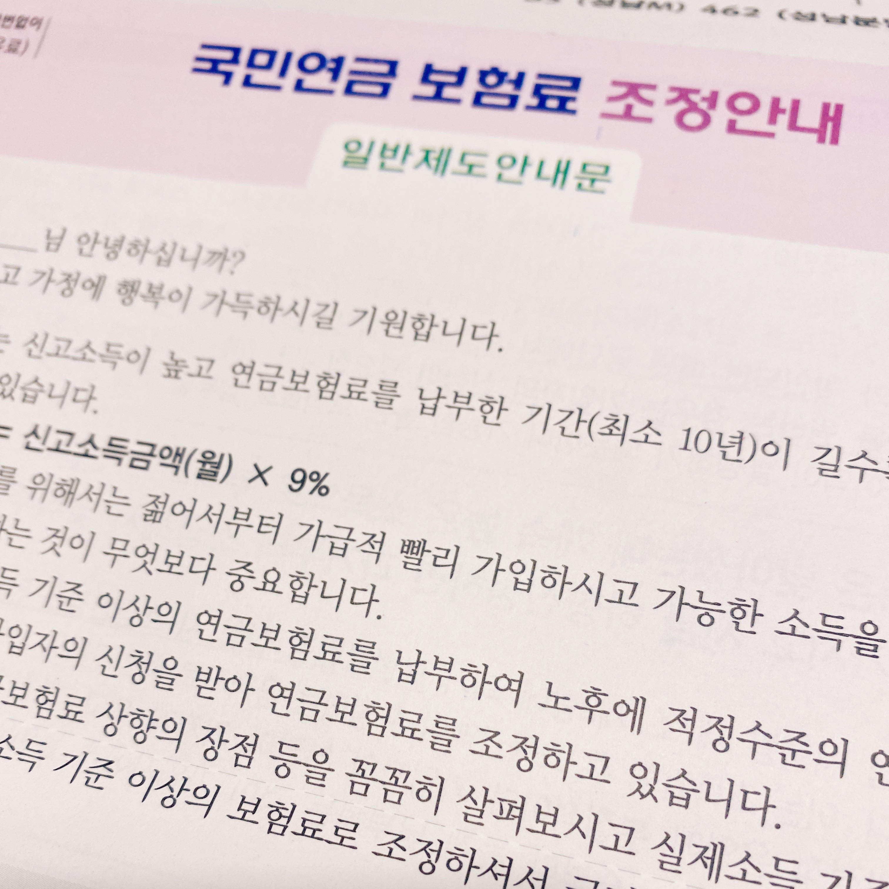 그럼에도 이렇게 국민연금 보험료 조정 안내 편지로 연금을 인상하라는 요구는 거부감이 들긴 하네요/./
