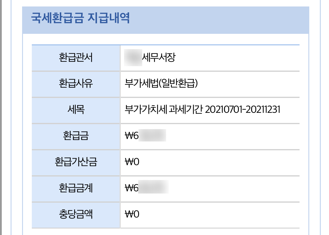 하반기 부가가치세는 혼자 신청했고, 세금 환급 금액이 있더라고요?
