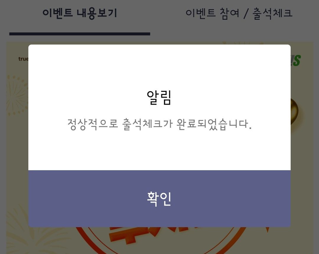 1. 해당 이벤트 페이지에서 오른쪽 [ 이벤트 참여 / 출석체크 ] 버튼을 누릅니다.