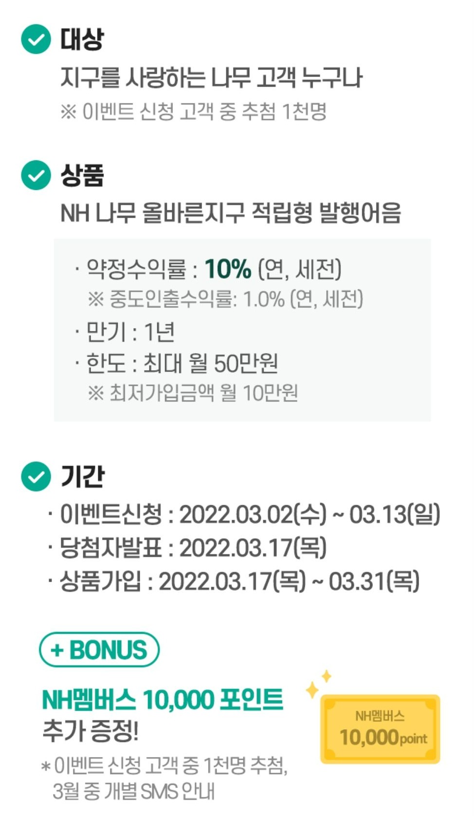 + 이벤트 신청 고객 중 1천 명 추첨해서, NH멤버스 1만 포인트 제공합니다.