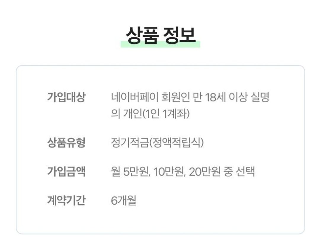 가입대상 : 네이버페이 회원인 만 18세 이상 실명 개인 (1인 1계좌)