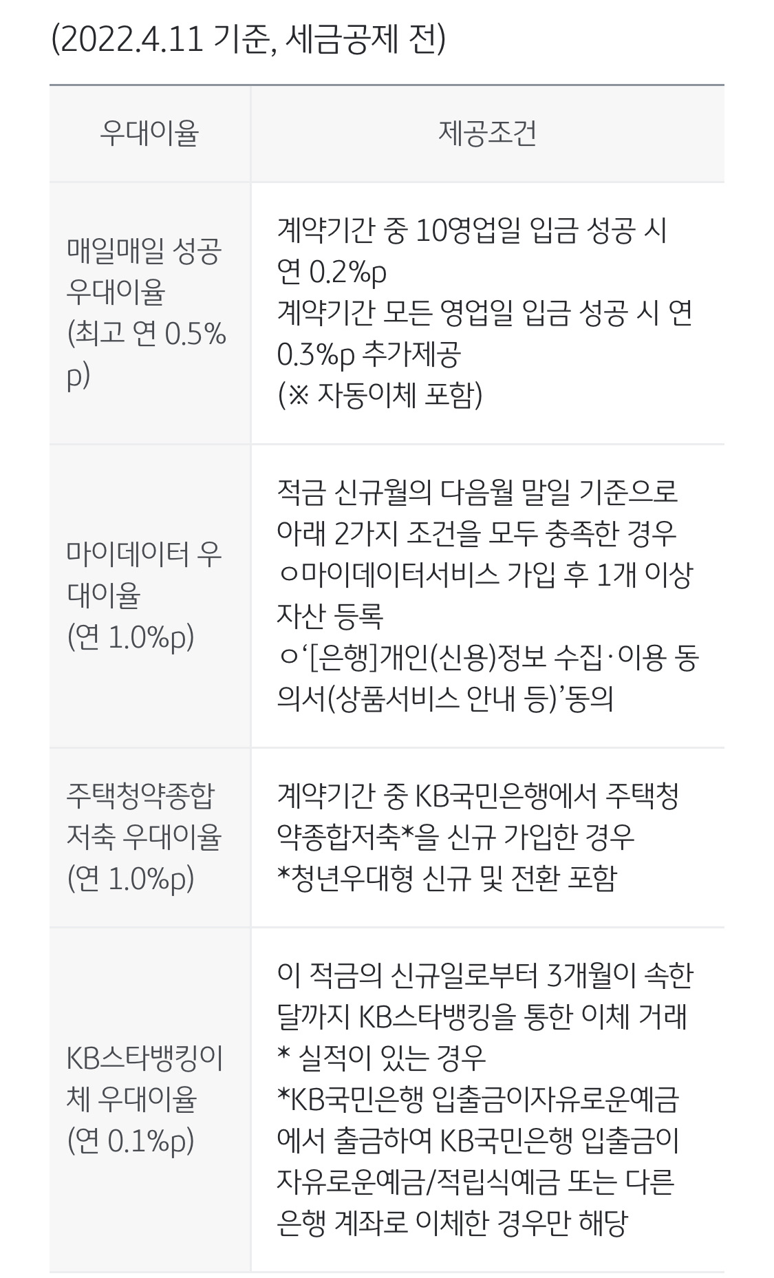 KB스타뱅킹이체 우대이율 (연 1.0%p)