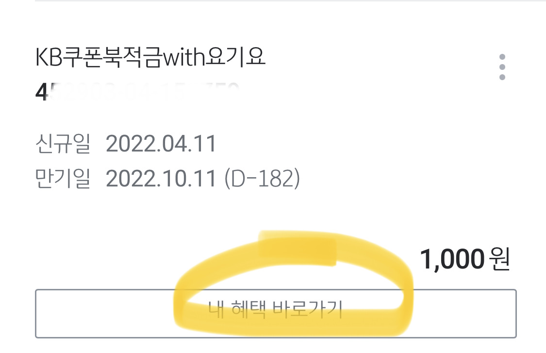 전체 계좌에서 KB쿠폰북적금 with 요기요 계좌 보면 '내 혜택 바로가기'있어요.
