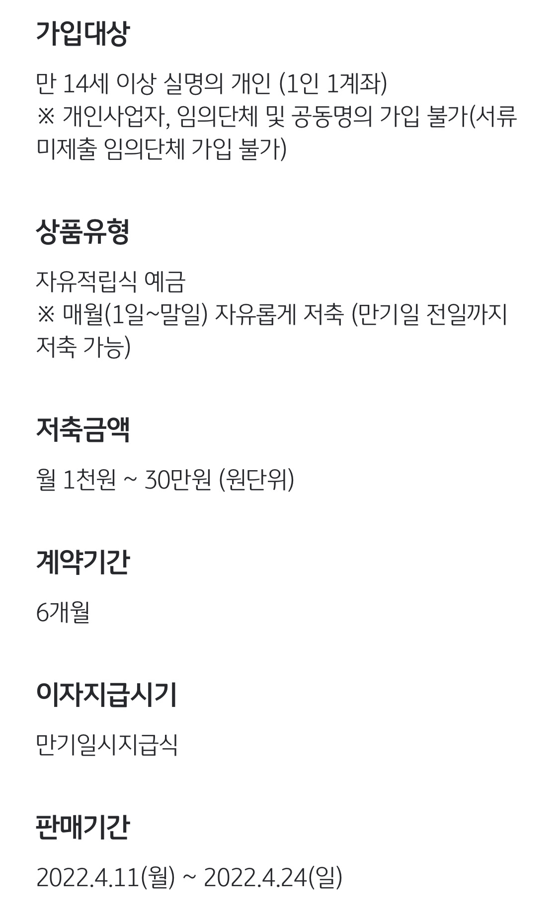 굉장히 심플한 적금 소개입니다.