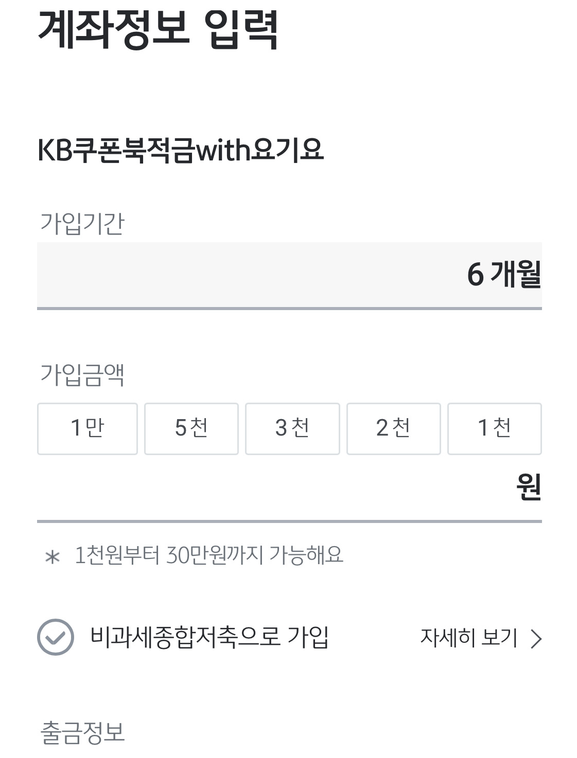 가입금액은 1,000원으로 했어요.