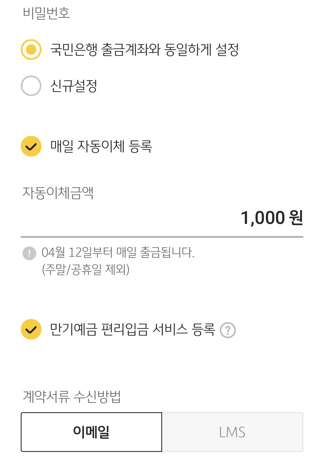 그래서 저는 매일 자동이체를 1,000원 최소 금액으로 해놨어요.