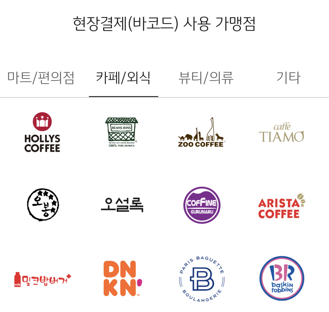 현장 결제 바코드 가능한 매장입니다.