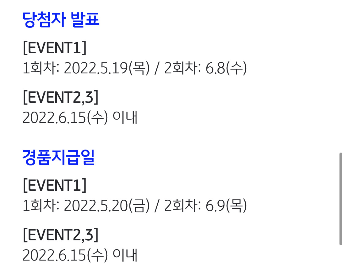 1회차와 2회차 경품은 중복 당첨 가능합니다.