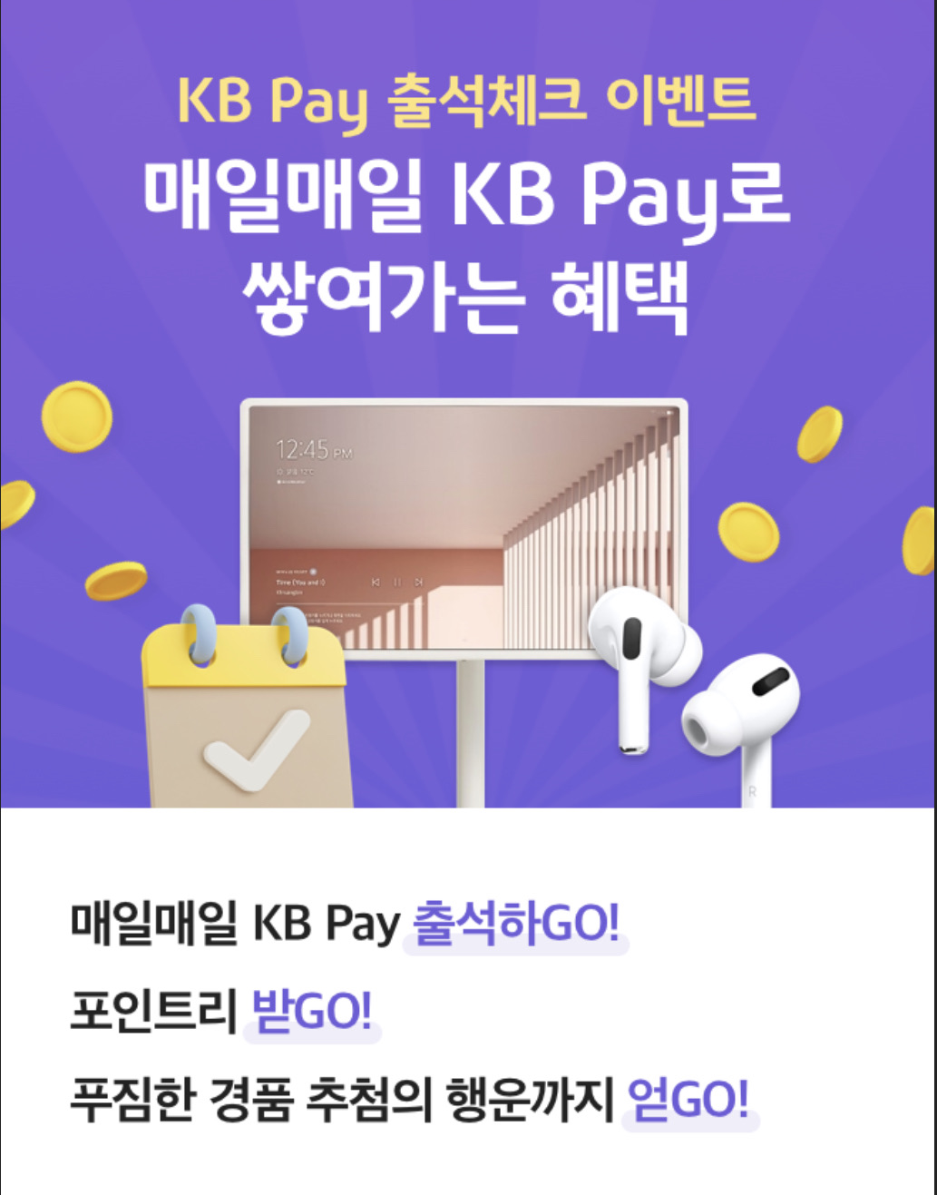 포인트리 출석체크 이벤트는 KB PAY 어플에서 진행!!
