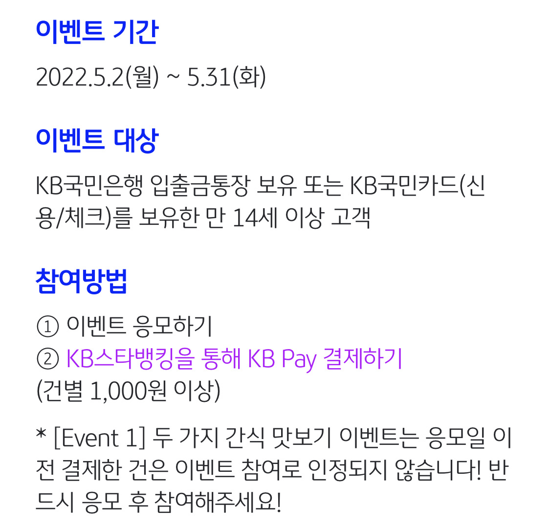 KB페이 현장 결제 이벤트는 'KB국민은행 > 이벤트'에서 응모하기 버튼 눌러주세요.