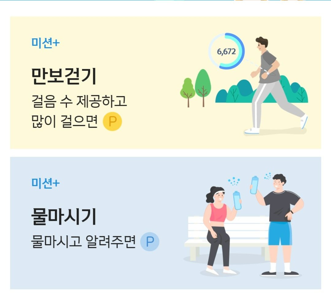 신한 SOL 어플 > 검색 > 미션플러스 검색하면 만보 걷기 / 물 마시기 포인트 이벤트가 나옵니다.