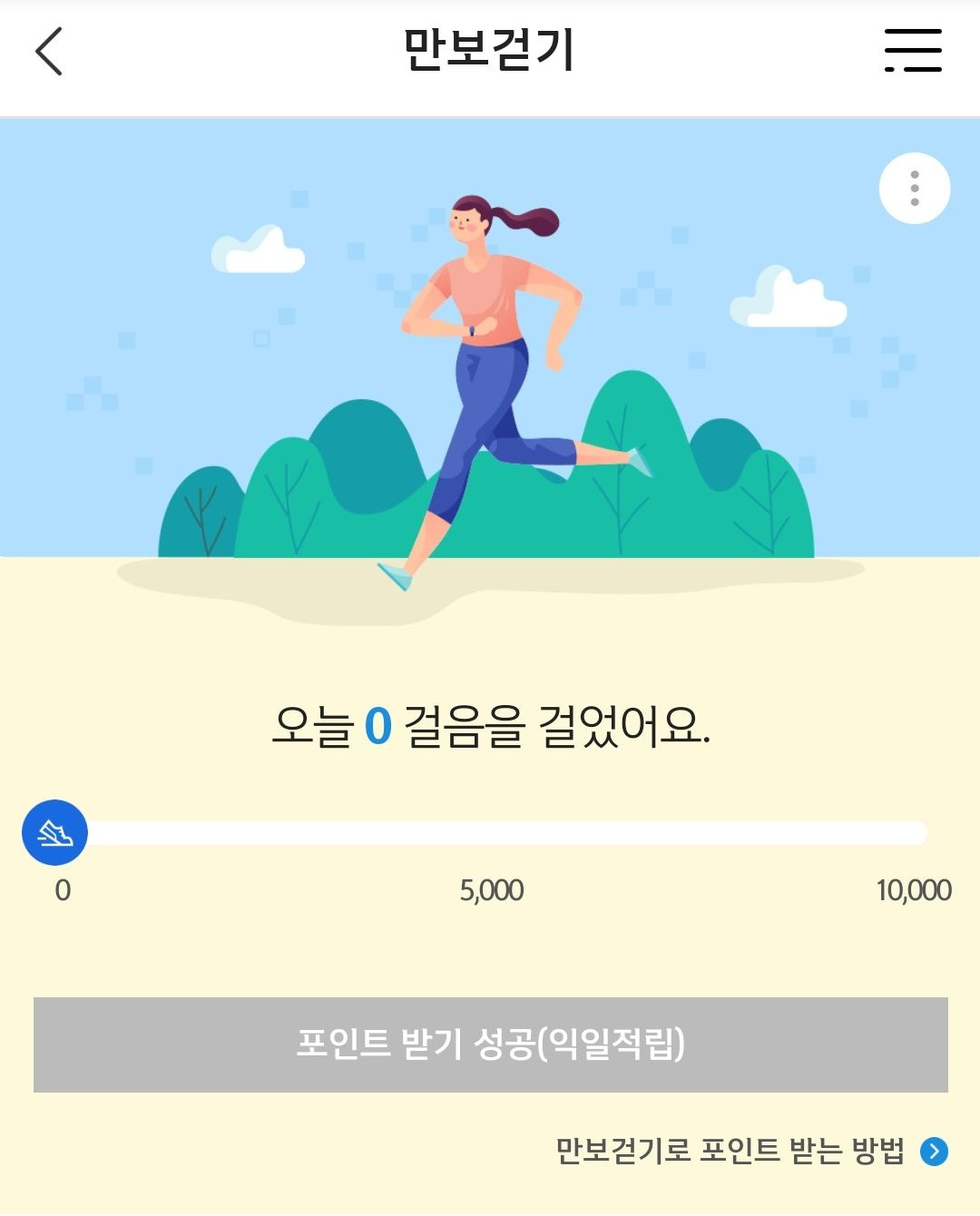 만보 걷기는 출석 미션 10포인트를 매일 받을 수 있습니다.