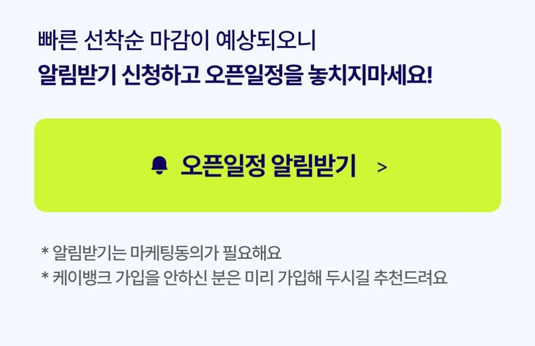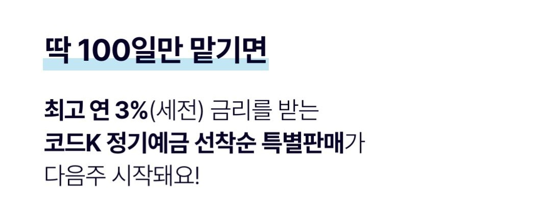 코드K 정기예금 선착순 특별판매 다음 주 시작합니다.