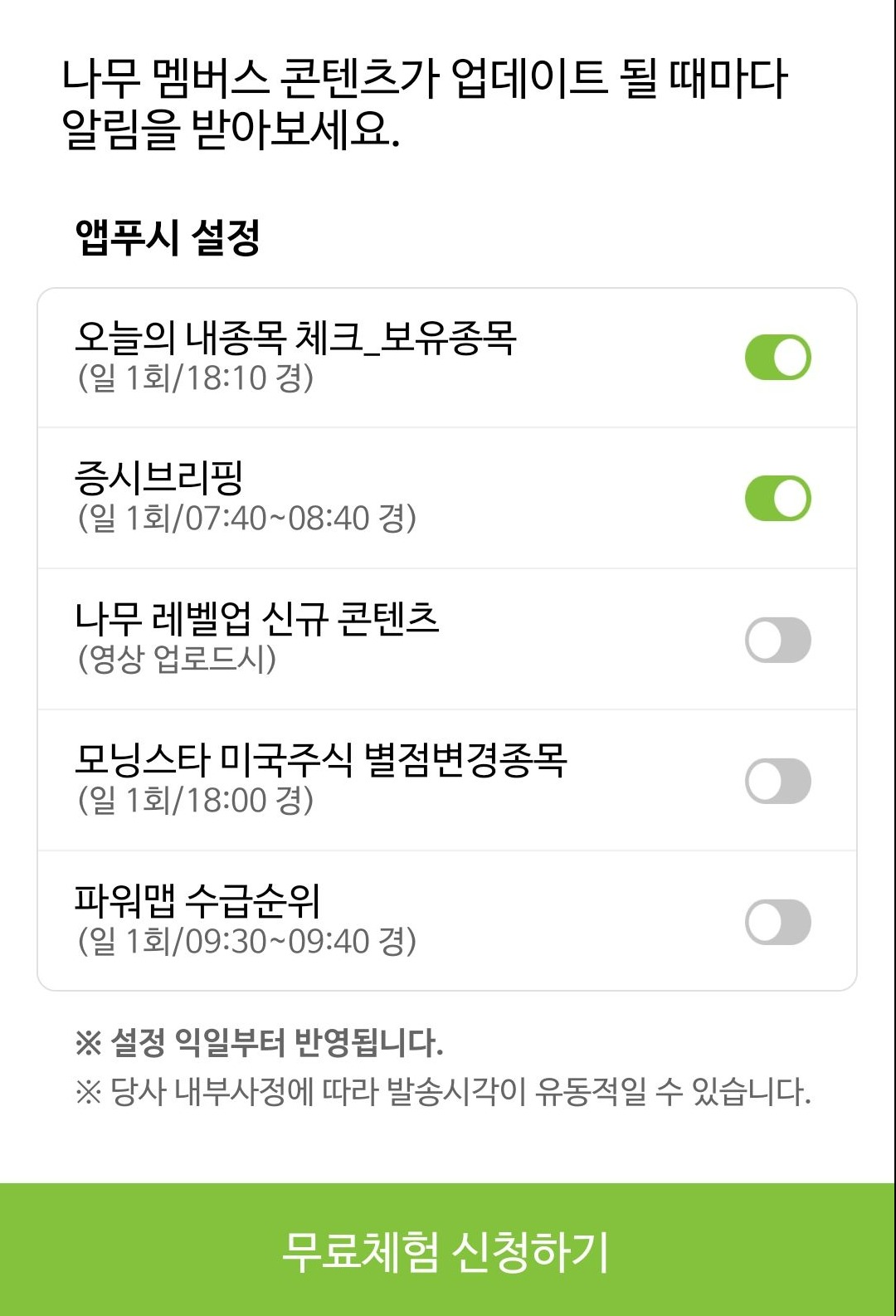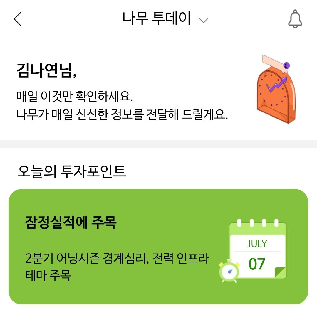 아침마다 주식 투자 콘텐츠도 팝업으로 전송합니다.