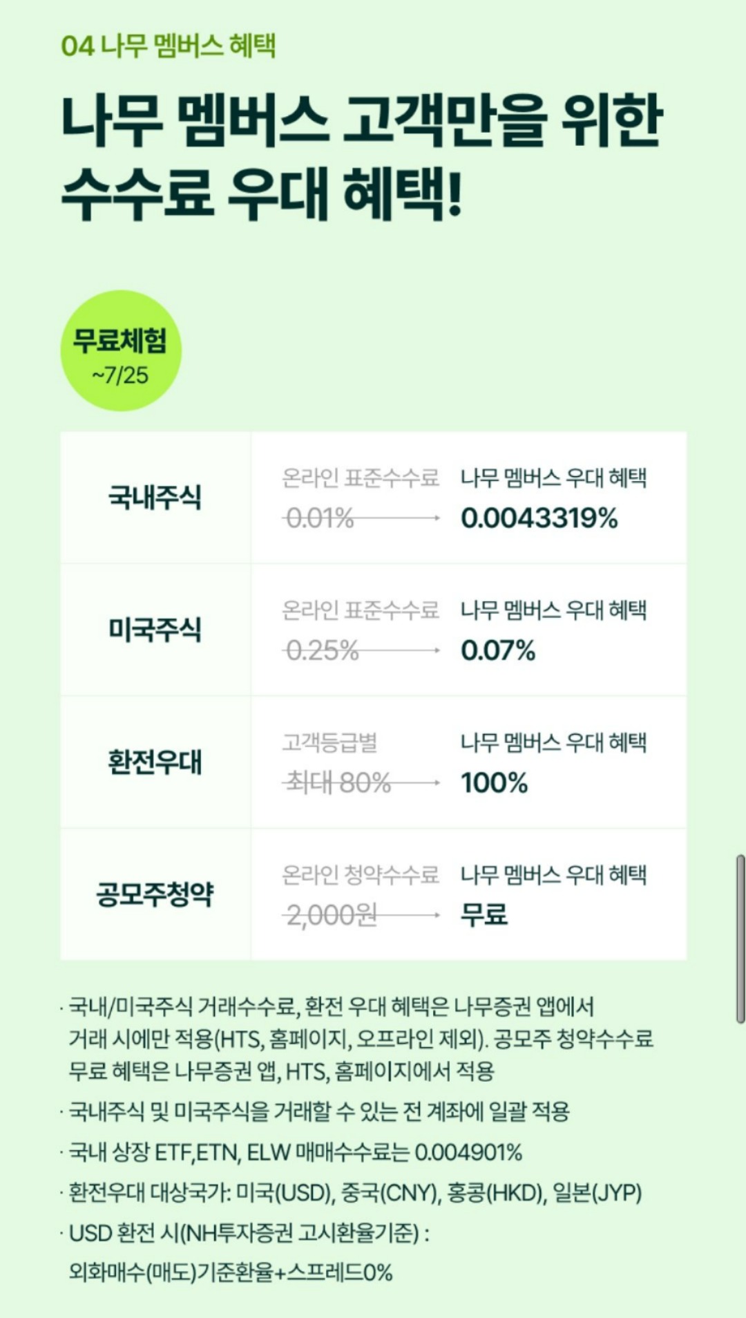 저는 이번에 에이치피에스피 청약할 때 나무멤버스 무료체험 신청해서 수수료 면제받았습니다.