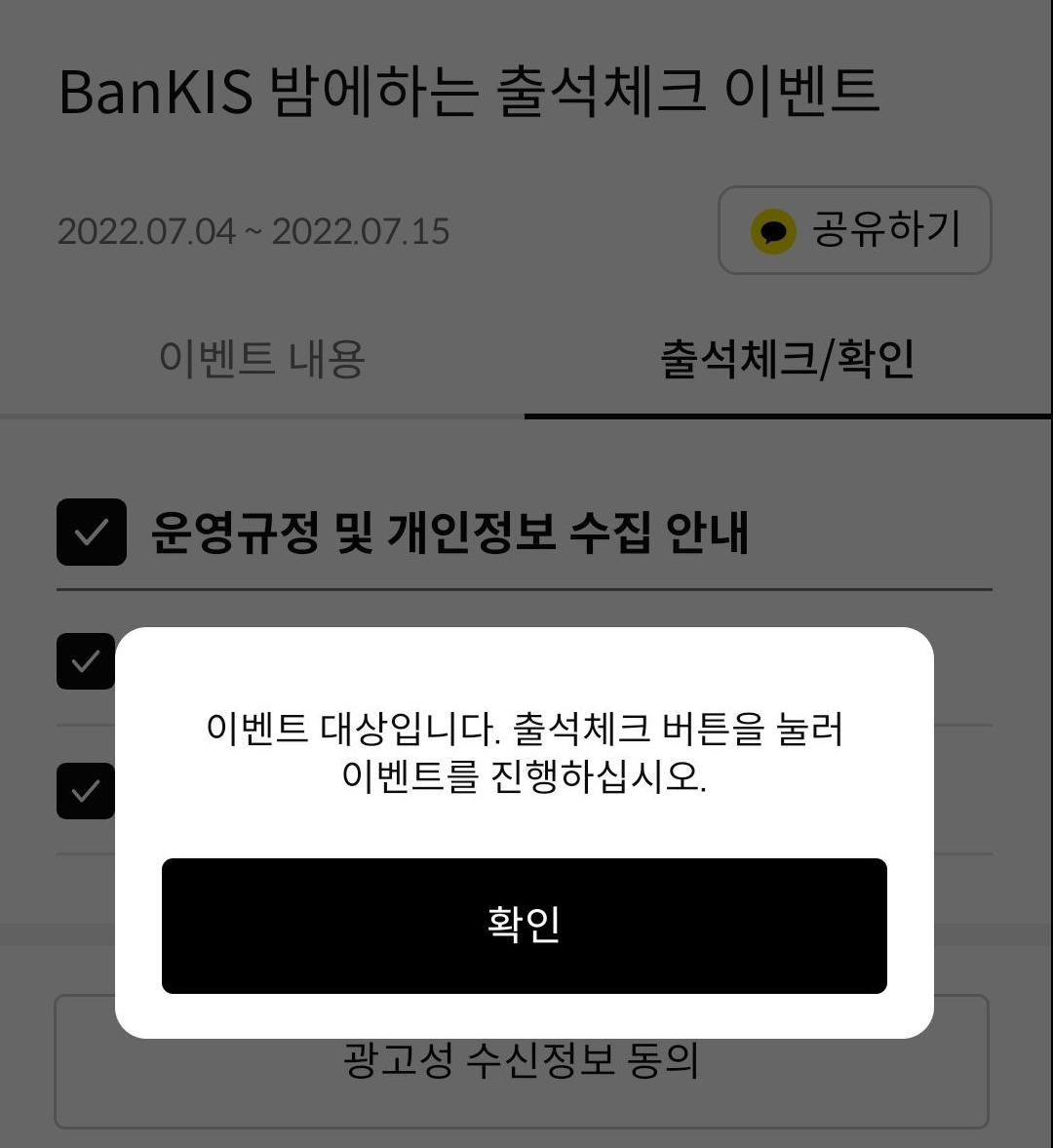 먼저 이벤트 확인부터 해야 출석체크 가능해요~