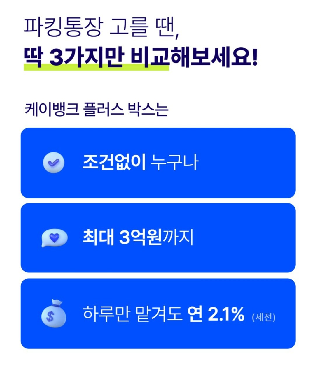 케이뱅크 플러스박스 / 연 2.1% / 최대 3억 원
