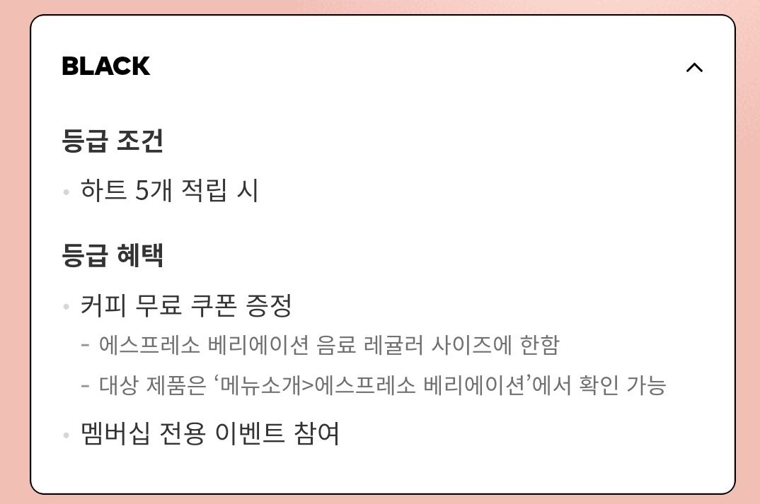 하트 5개 적립하면 커피 무료 쿠폰 받을 수 있어요.