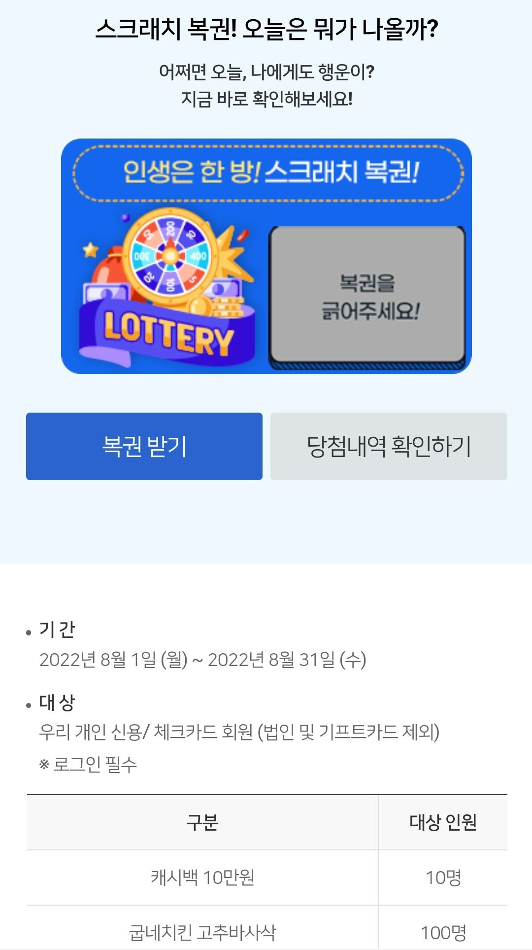 추가로 우리카드 자주 이용하는 분들은 복권 이벤트도 참여 가능합니다.