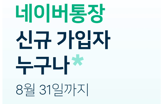 8월 31일까지 네이버통장 신규가입자라면 누구나 혜택을 받을 수 있어요.