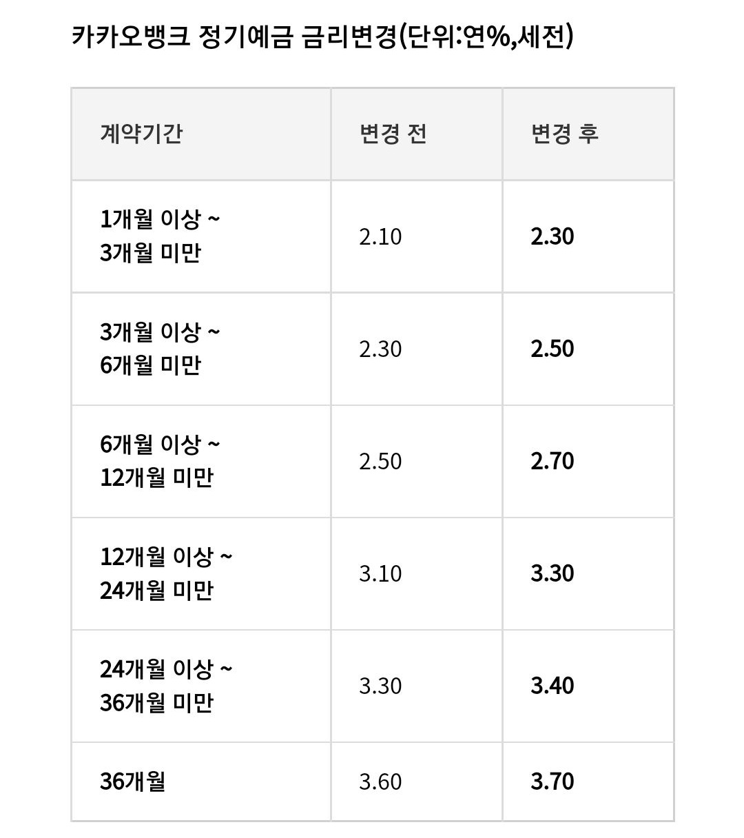 정기예금, 26주 적금, 자유적금 금리도 인상