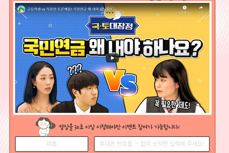국민연금 유튜브 30초 이상 보면 바로 카톡으로 연락옵니당!