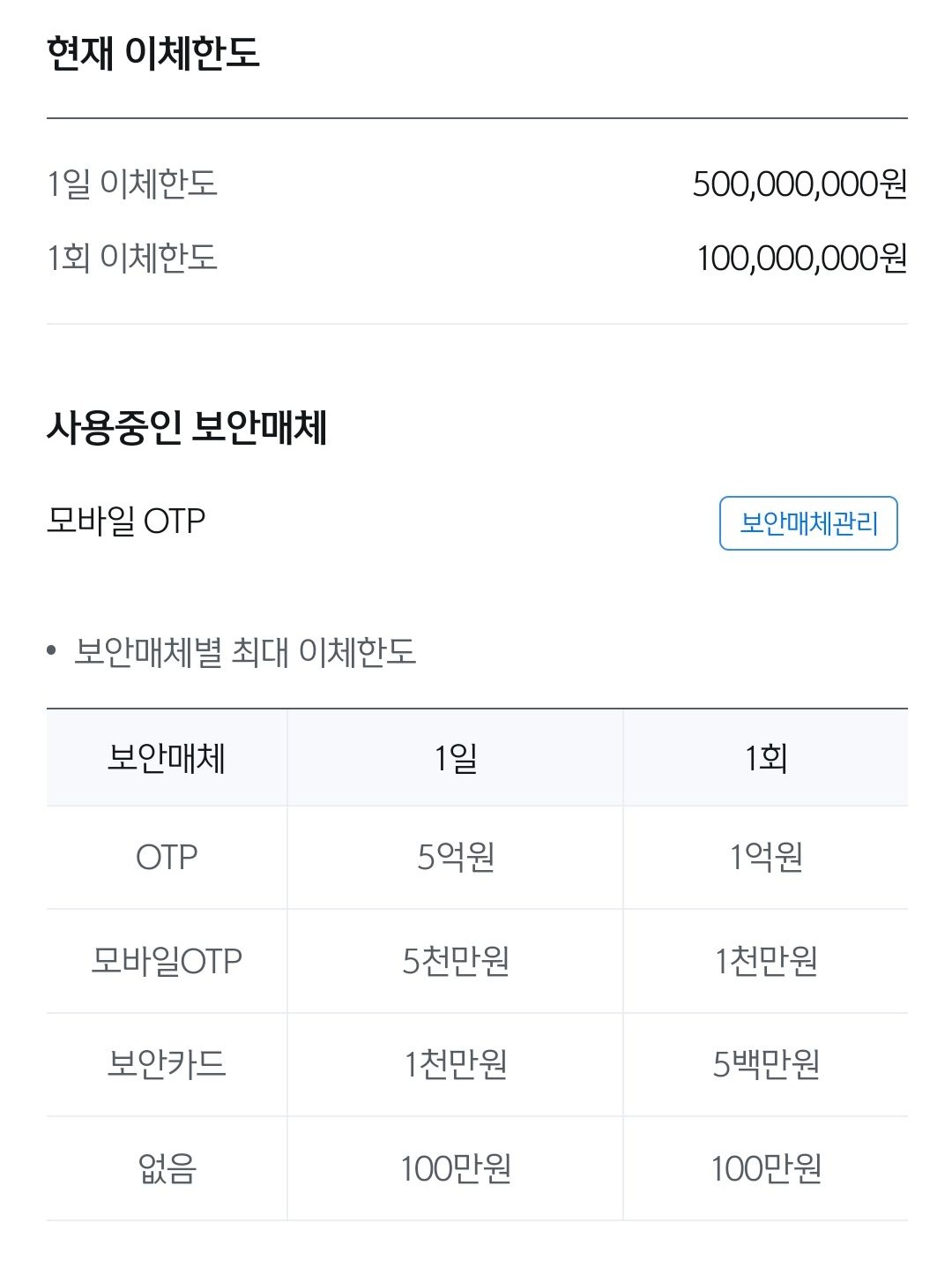 모바일 OTP 비대면 최대한도는 1일 5천만, 1회 1천만 원으로 창구 방문하면 추가 증액할 수 있어요.