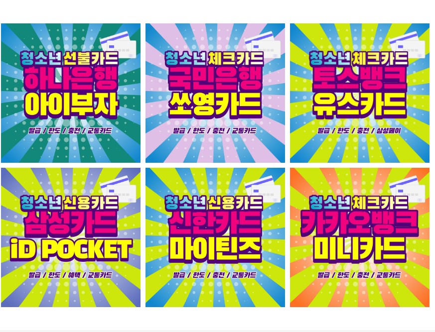 현재 발급 가능한 미성년자, 청소년 카드 (순서는 랜덤, 추천 순 아닙니다)