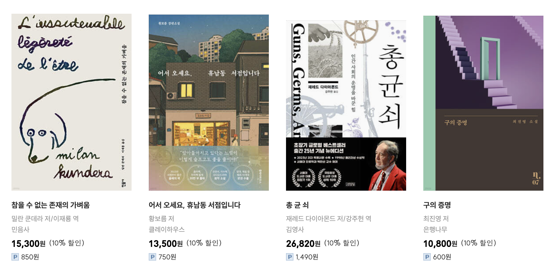 이번 예스24 챌린지 책입니다. 저는 읽은 책들도 있어서 반가웠는데요. 새로운 책들도 필사 챌린지를 통해서 읽어봐도 좋겠더라고요.